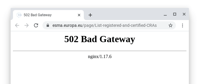 The competent authorities publish lists of the Credit Rating Agencies that they have recognized or certified. For various reasons, these are not always visible, such as on Monday, July 27, 2020 @ 09:00 – the relevant page of the website of the European Securities and Markets Authority was not accessible to everybody. No matter, which device and which browser you are using, you would not get their information online. We therefore have lists of the data available to us here. In contrast to the official lists, our ones include links to Credit Rating Agencies’ websites. This makes it easy to get an overview of all recognized agencies and to contact Credit Rating Agencies. Please ask us for updates.